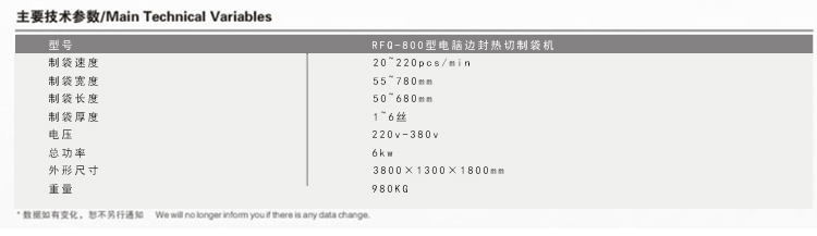 適用于PE、PP、OPP、BOPP、OPF等塑料材料自動熱切制作的針織、服裝、食品、文具等包裝,是目前替代進口同類產品的先進制袋設備。